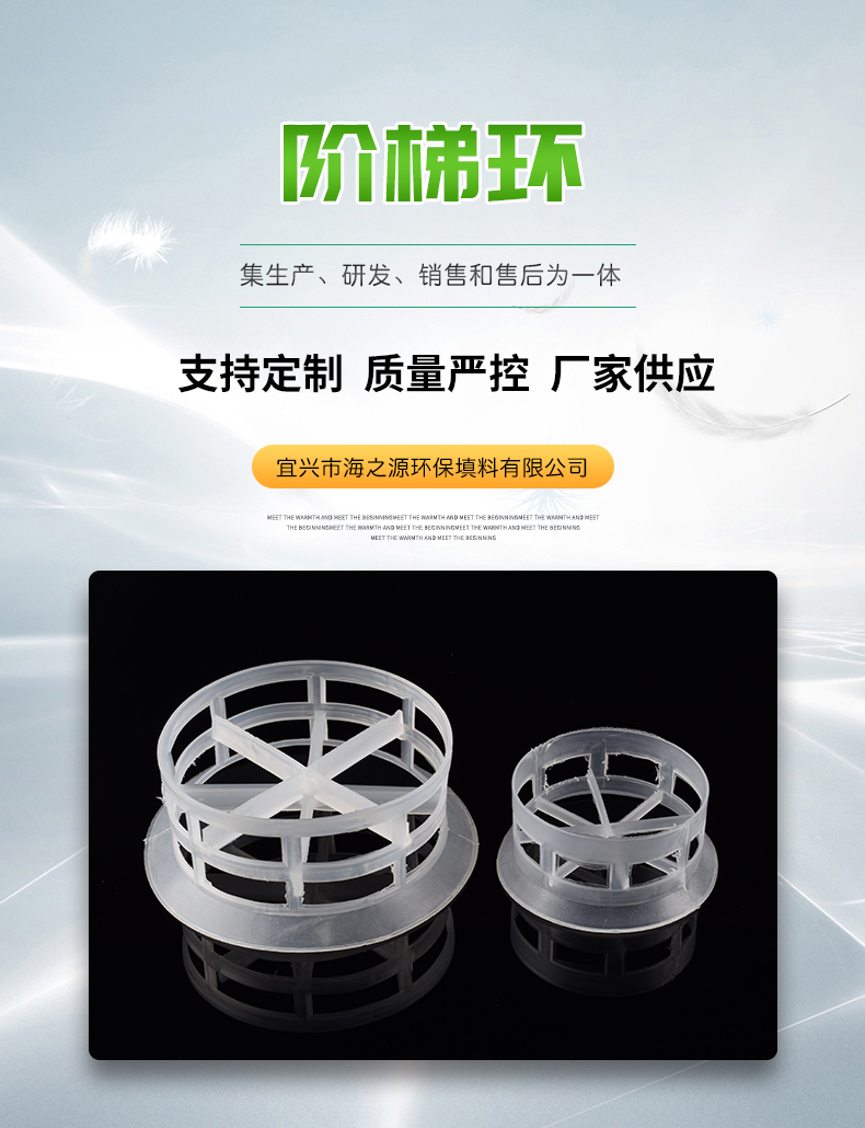 由于階梯環(huán)填料的側(cè)端增加了翻邊,不但可以增加填料環(huán)的機(jī)械強(qiáng)度,而且由于破壞了填料結(jié)構(gòu)的對稱性,因而增加了填料投放時(shí)的定向幾率。又由于翻邊的影響,使得填料在堆積時(shí)填料環(huán)隙之間的接觸由此線性接觸為主變?yōu)橐渣c(diǎn)接觸為主。這樣,不但增加了填料顆粒之間的空隙,減少了氣體穿過填料層的阻力,而且這些接觸點(diǎn)還可以為液體沿填料表面流動(dòng)的匯聚分散點(diǎn),從而促進(jìn)了液膜的表面更新,有利于填料傳質(zhì)效率的提高。